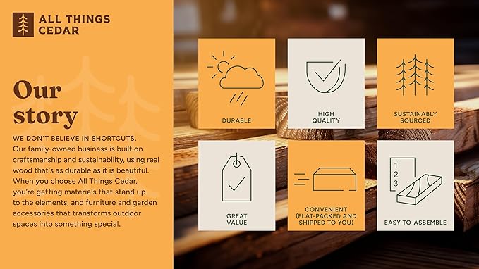 - Natural Cedar Construction: Manufactured with premium -quality, untreated Western Red Cedar, this raised garden box benefits from the wood's natural oils, which act as preservatives, enhancing durability and resistance to rot and decay. It's designed to withstand outdoor elements, ensuring long-lasting use in any environment.