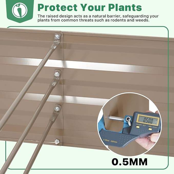 ONCEMORE Galvanized Raised Garden Bed for Vegetables Flowers Herbs, Metal Raised Garden Bed Kit with 2 PCS Tomato Cage, Gloves, Trellis Netting, Plant Labels, Plant Ties, Brown 8×4×1FT