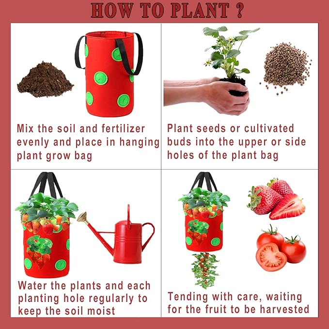 - Widely used: These hanging garden planting bags are suitable for most vegetables or flowers, such as tomatoes, strawberries, mint, potatoes, succulents, green plants and any small plants you want to grow