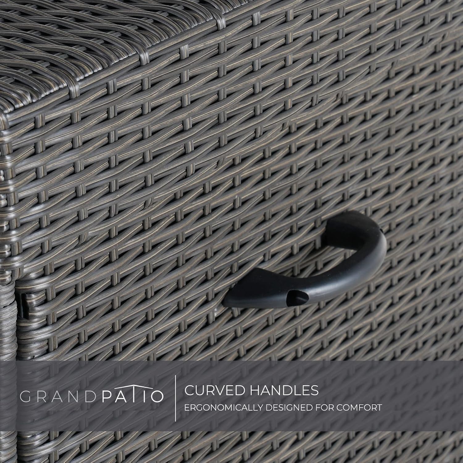- UNIQUE DESIGN: Children friendly two pneumatic pistons for easy lift and soft closure, a feature you will appreciate when you have your hands full. Combined with water resistant widened lid to protect your belongings better, meanwhile you can open outdoor wicker storage easily by front pull. Holes at bottom of patio storage box for good ventilation to keep inside clean.