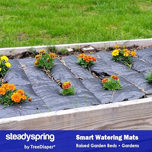 SteadySpring® Smart Watering Garden Mat for Raised Garden Beds 30-Day Irrigation Auto Refills with Rain for Gardens, Tomato Plants, Flowers (2-Pack)