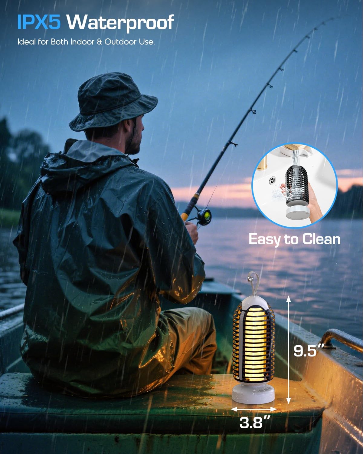 - IPX5 Waterproof & Easy to Clean: Built with an IPX5 waterproof rating, this portable mosquito zapper outdoor handles rainy conditions with ease for safe, reliable outdoor use. The bug zapper outdoor cordless features a magnetic hook for easy hanging or stable placement on flat surfaces. The small brush makes this fly killer easy to remove insects stuck to the grid. Note: Do not immerse in water. Whether indoors or outdoors, keeping bothersome insects at bay is effortlessly achievable.