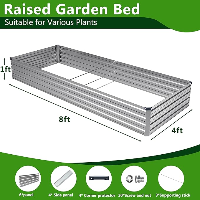 - Professional Size & Versatile Planting Space:8x4x1ft (96"L x 48"W x 12"H) raised bed offers of planting space,ideal for vegetables,herbs,flowers,fruits
