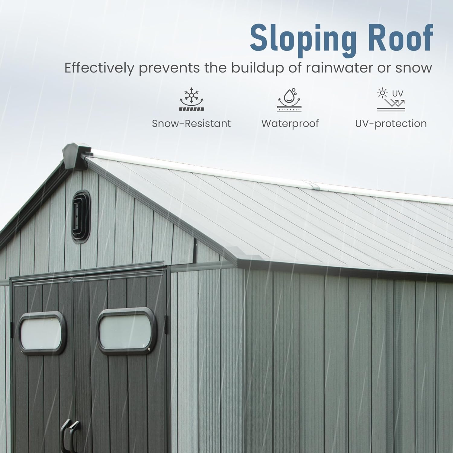 Domi 8x10 FT Outdoor Resin Storage Shed, All-Weather Double-Wall Garden Shed for Backyard, Lawn Tools, Bike, Mower & Pool Equipment with Lockable Doors, Ventilated Roof, Grey