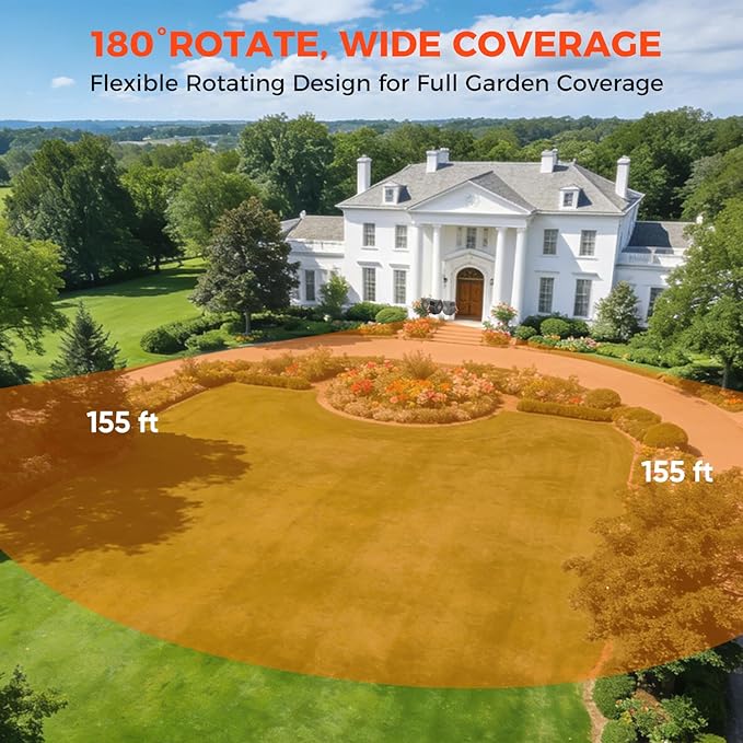 - 180° Rotation & Wide Reach: The 180° swivel base of the retractable garden hose covers up to 26,000 sq ft, while the optimized hose path reduces kinks and maintains strong water pressure for extended reach without moving the reel.