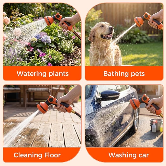 - 9-Mode Versatile Sprayer: Pair with your garden hose reel to switch between 9 spray patterns with an ergonomic anti-slip grip and high-visibility color design for easy handling and quick nozzle spotting in your garden.