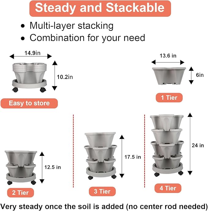 - 【STACKABLE TOWER】 Stack planters high or use pots separately to save your space